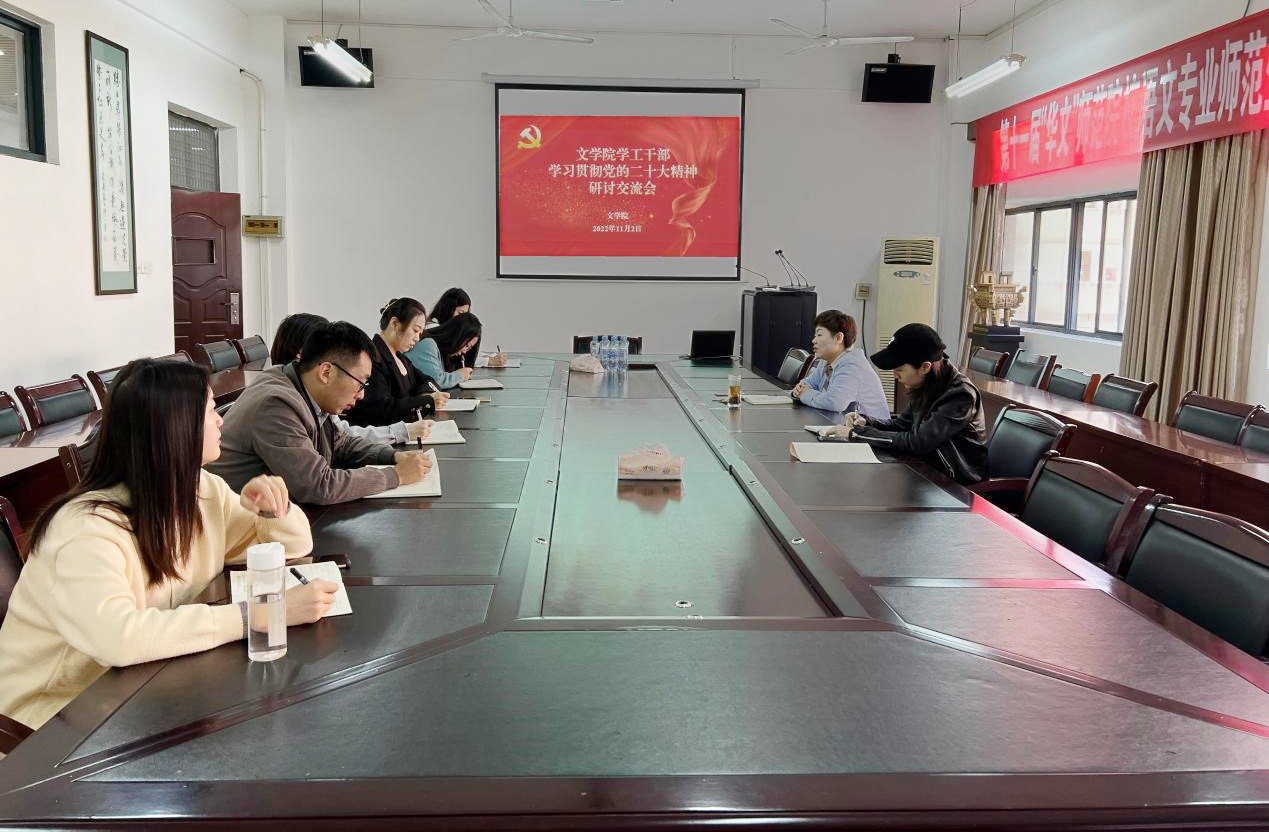 为深入学习宣传贯彻党的二十大精神,把关心青年成长,感召青年进步,引领青年发展的要求落实到学生思政教育工作中去,11月2日上午,文学院于名达楼3306会议室召开学工干部学习贯彻党的二十大精神研讨交流会。院党委书记和全体辅导员参会。